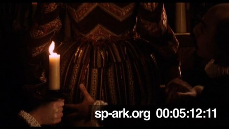 Description Orlando changing his clothes helped by three valets.