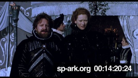 Description Orlando standing on ice talking to one of King James' lords in waiting