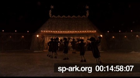 Description Establishing shot of Royal Tent at night. Servants skate towards the tent with silver trays of food.