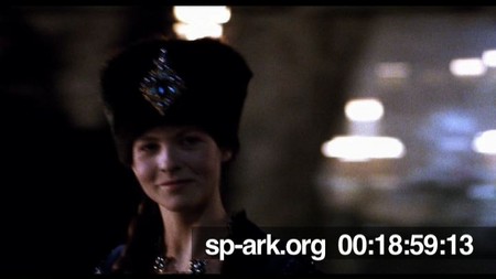 Description Sasha skating with partner, looking at Orlando as she passes him.
