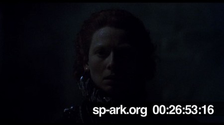 Description medium shot of Orlando's face as rain begins to fall heavily.