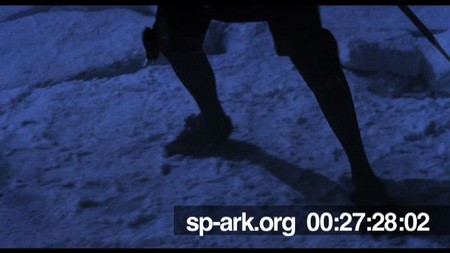 Description close up of Orlando's feet as he leaps from one moving ice-floe to another.