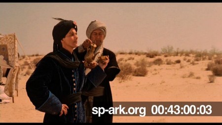 Description the Khan's servant refilling his cup during desert drinking ceremony