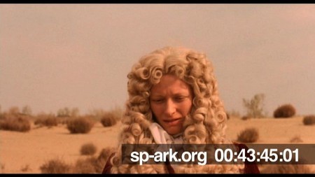 Description medium shot of Orlando responding to the Khan about women, he begins to fall to his knees.