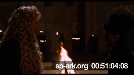 Description Orlando walking towards Khan after telling Archduke Harry to distribute arms.