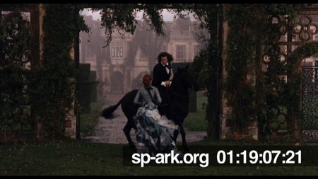 Description long shot of Orlando saying goodbye to Shelmerdine as he rides away on his horse.