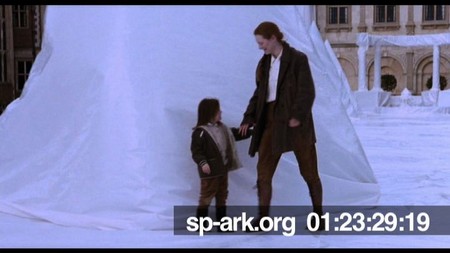 Description Orlando and daughter walking through covered grounds of Great House, Orlando takes daughters hand, voice over finishes narrative
