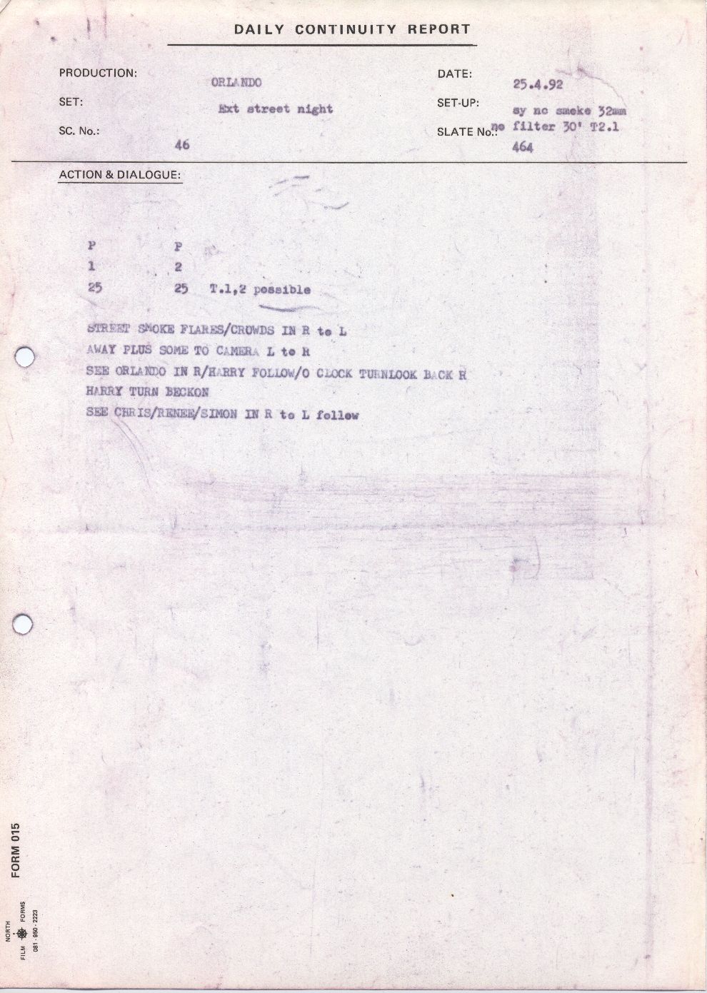 Description Orlando Daily Continuity Sheet 8, Black and white A4 typed, Paper