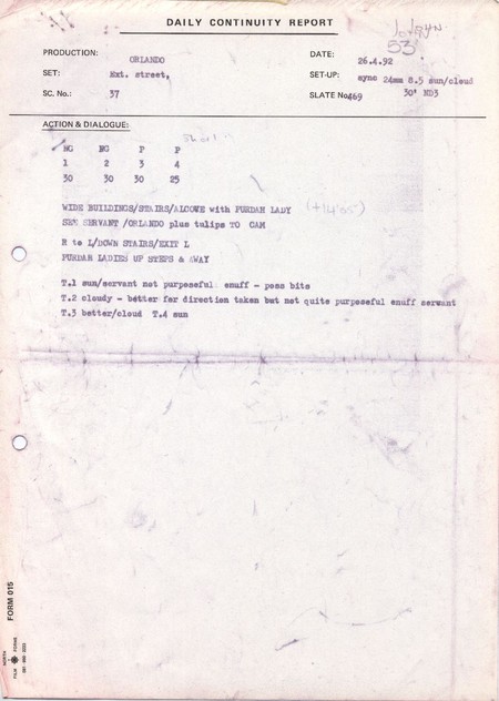 Description Orlando Daily Continuity Sheet 3, Black and white A4 typed, Paper