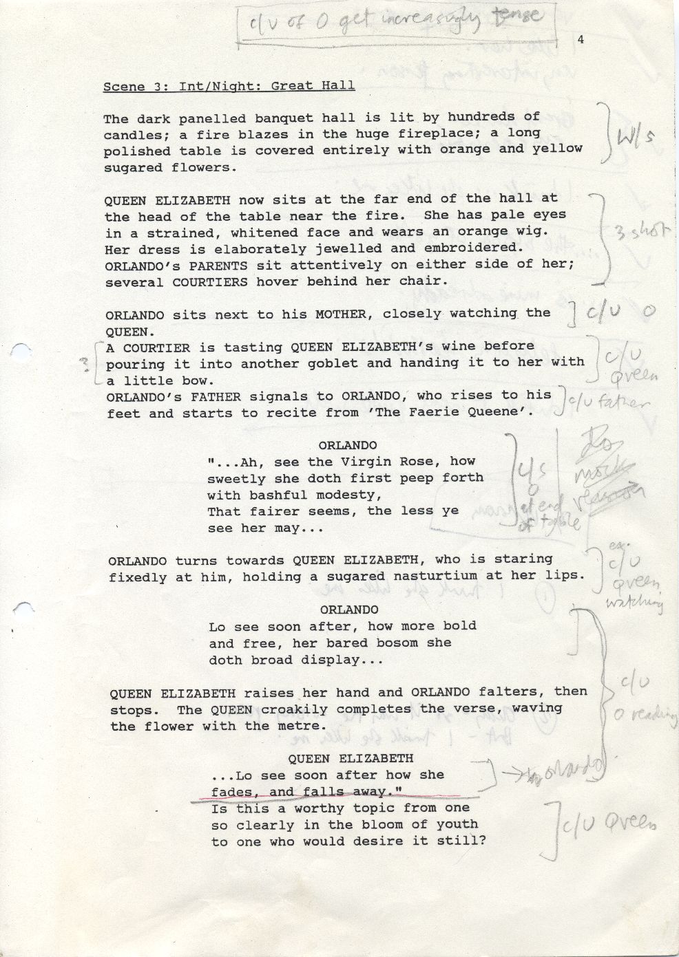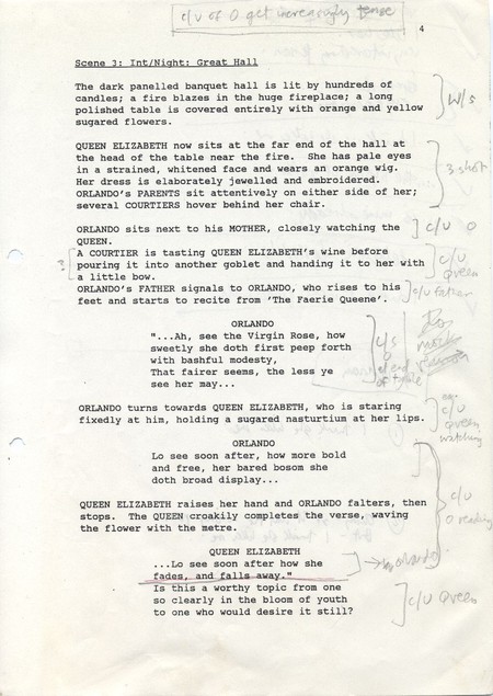 This pathway aims to provide insights into the complexities of creating, constructing and shooting a single shot. As you can see from the list of items in the pathway, a plethora of materials are generated for each shot which can relate to their creative vision (directors notes), their logistical planning (schedules), the tracking and logging of materials (shots, takes and reel numbers, continuity), their previewing (video assist footage) and their documenting (photographic images). I attempt to provide a contextual dialogue for each of the items in the pathway, explaining their function and their relationship to one another. I have also attempted to order the items procedurally to demonstrate the off/on set workflow.
