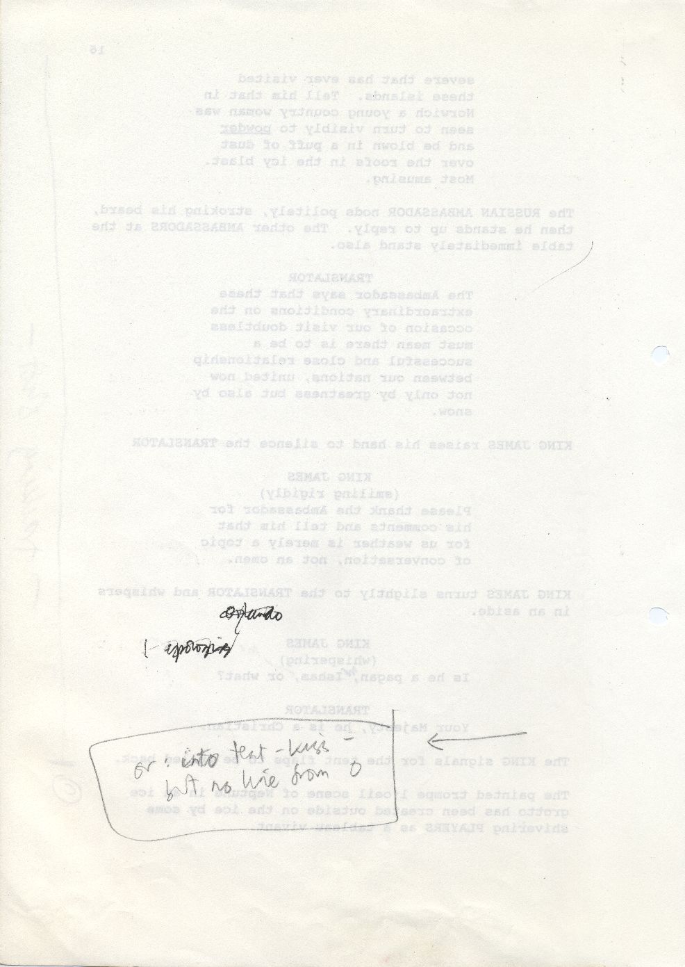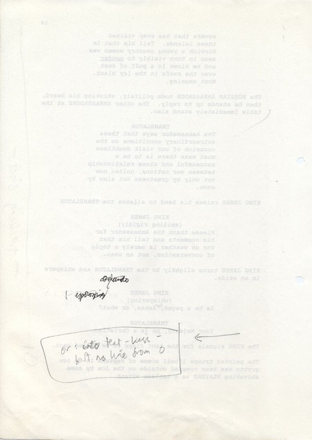 Description Black and white A4 computer printed with handwritten annotations, bound into book, Paper,Orlando Sally Potter’s Shooting Script page 16 back