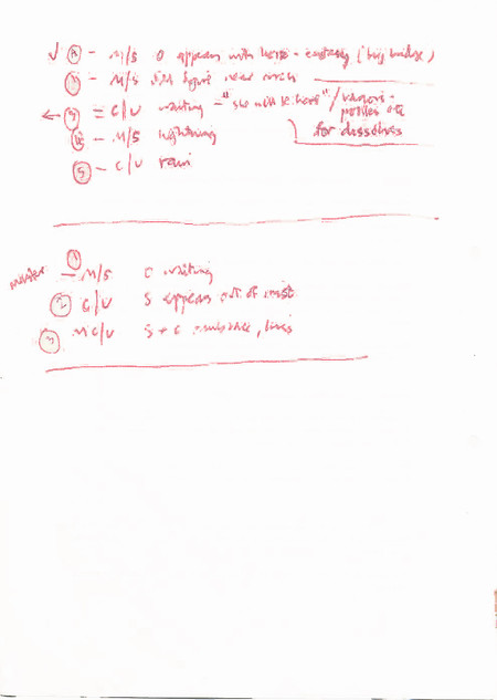Description Black and white A4 computer printed with handwritten annotations, bound into book, Paper, Orlando Sally Potter’s Shooting Script page 93 back