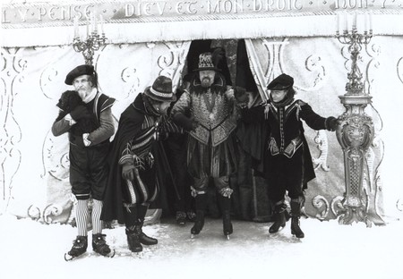Description 8x10" black and white photograph of King James ice skating in royal enclosure