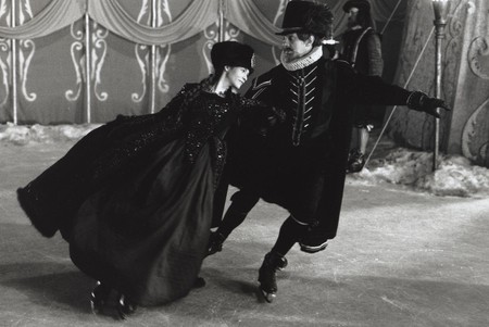Description 8x10" black and white photograph of Sasha ice dancing with male partner