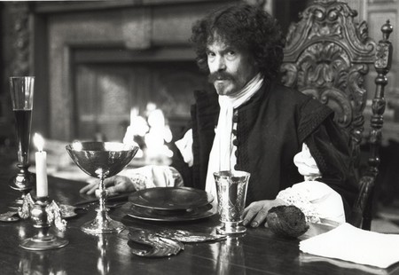 Description 8x10" black and white photograph of Nick Greene seated at table in Great Hall