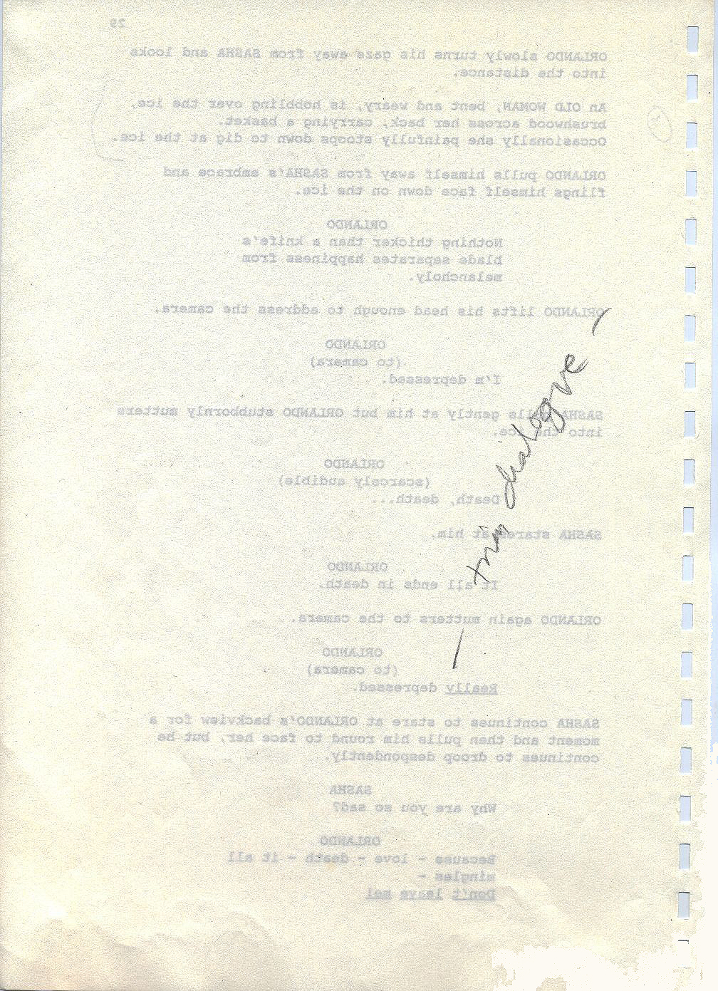 Description Revised draft script for Orlando, handwritten notes in pencil, page 29, back