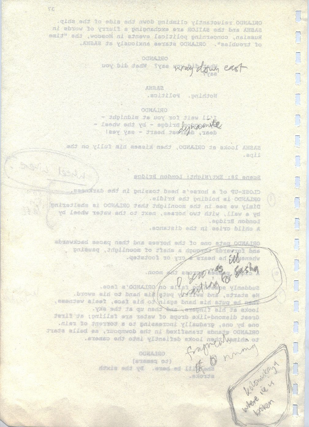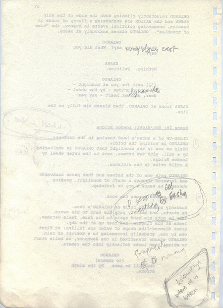 Description Revised draft script for Orlando, handwritten notes in pencil, page 37, back