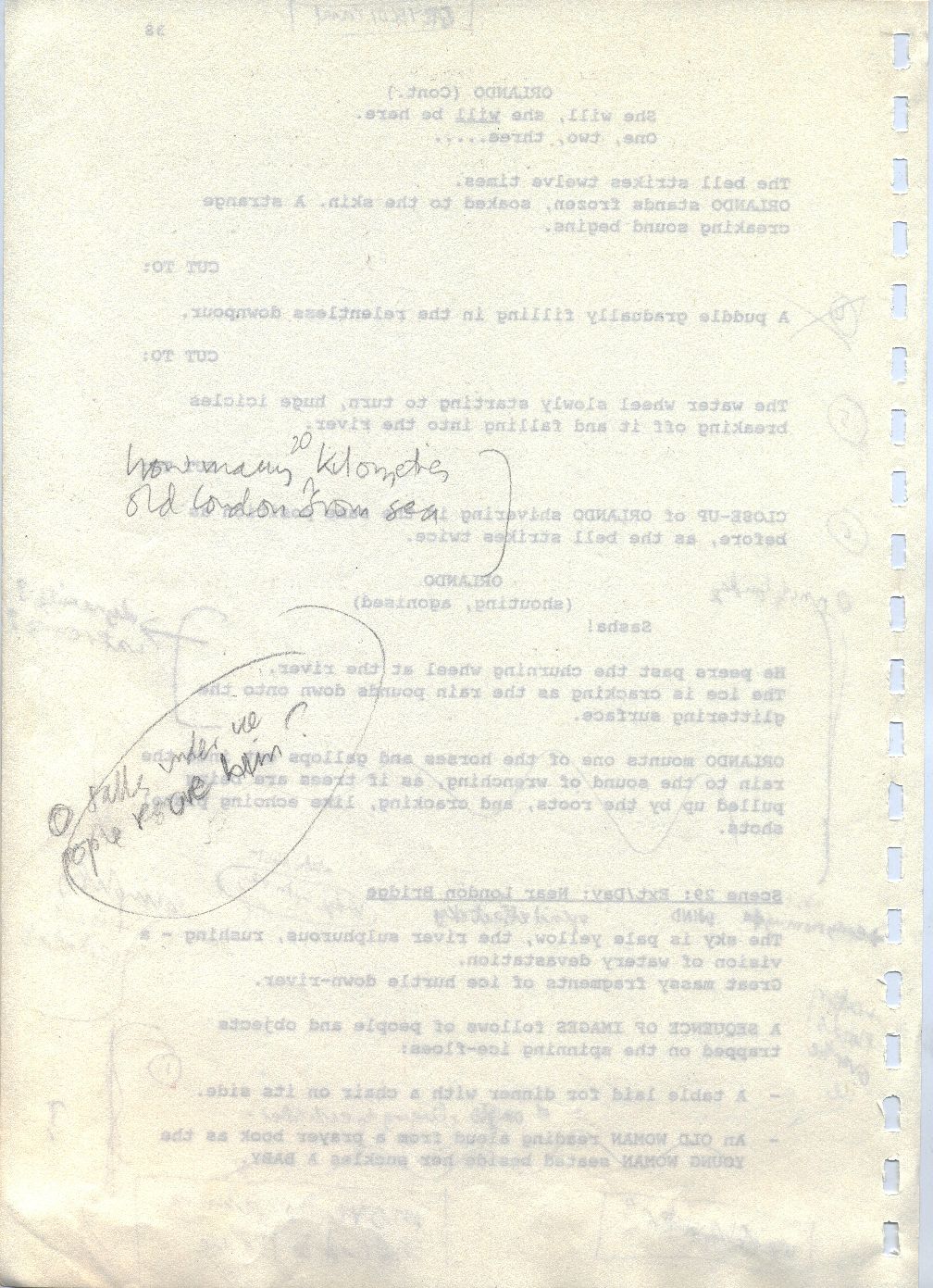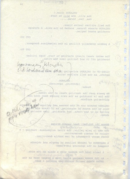 Description Revised draft script for Orlando, handwritten notes in pencil, page 37, back