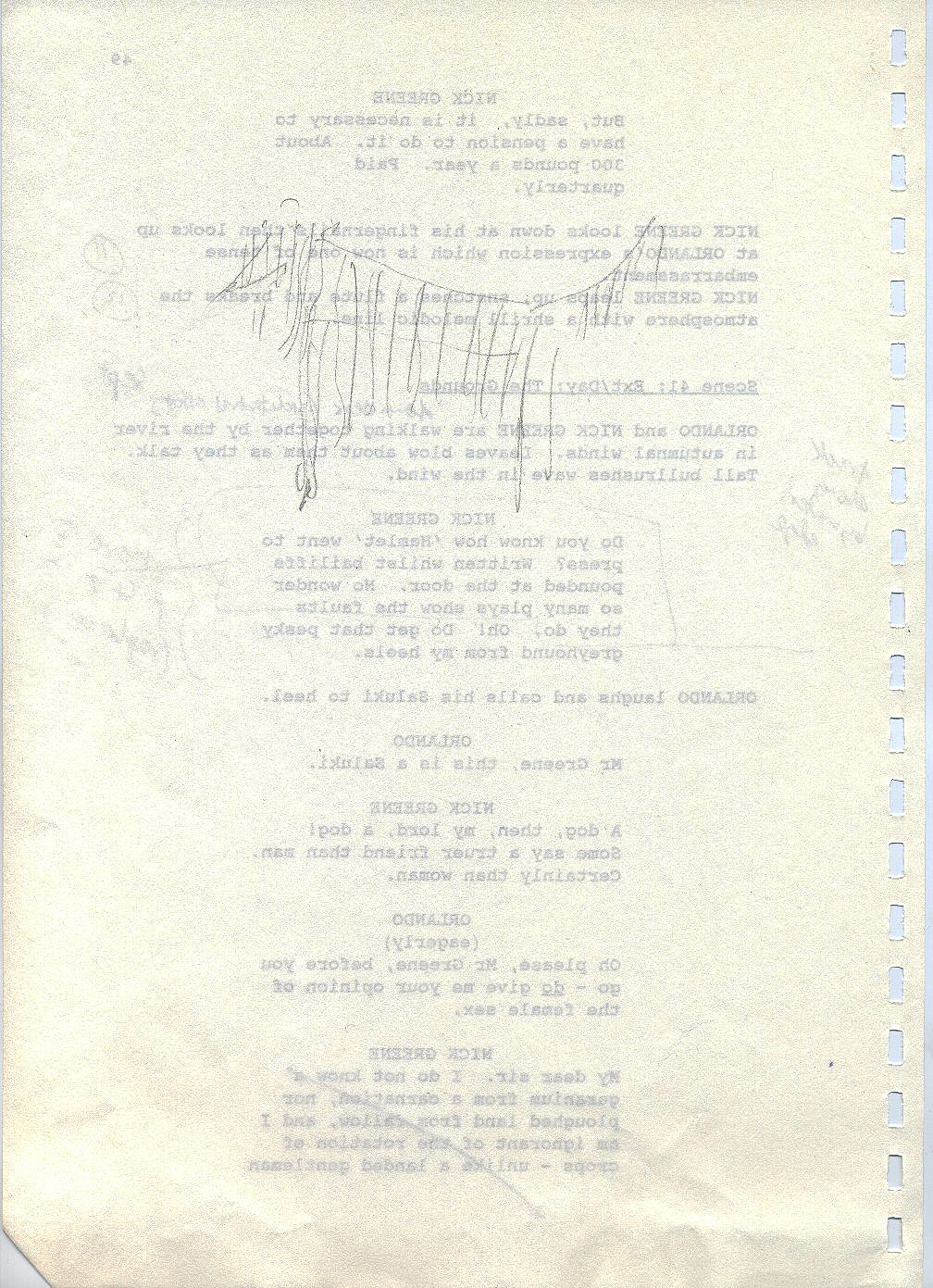 Description Revised draft script for Orlando, sketch in pencil, page 49, back