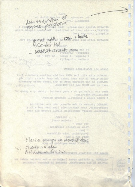 Description Revised draft script for Orlando, handwritten notes in pencil, page 63, back