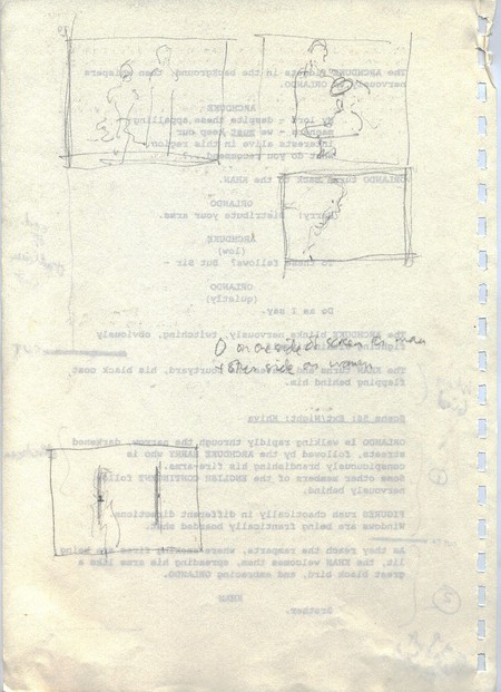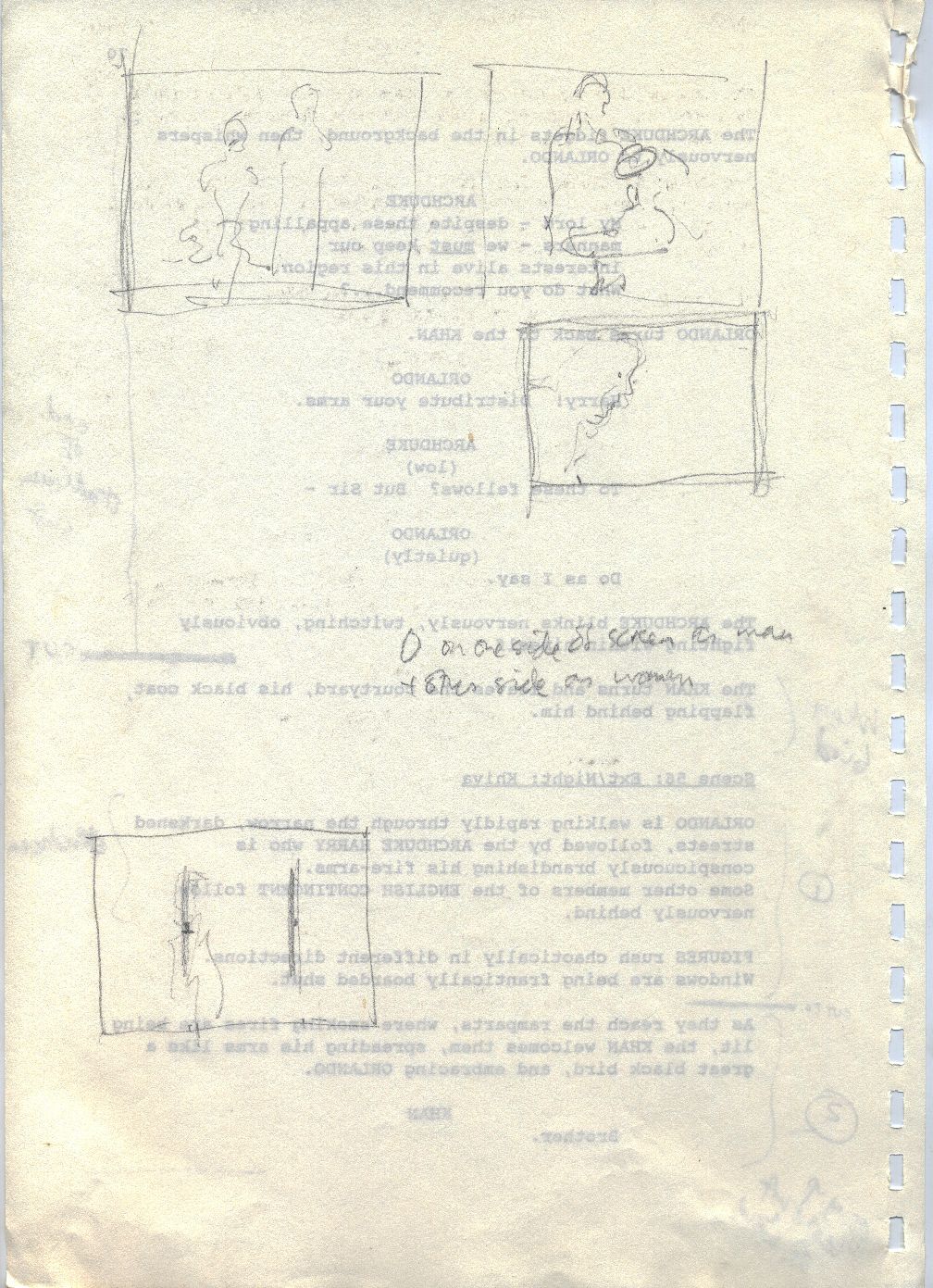 Description Revised draft script for Orlando, handwritten notes and diagrams in pencil, page 70, back
