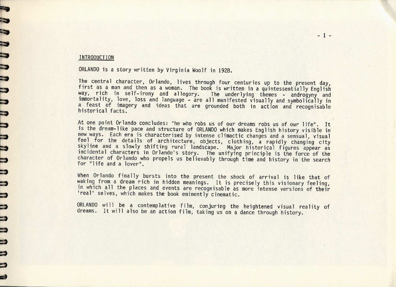 Pathway to reflect upon and illustrate the process of adapting Virginia Woolf’s 1928 novel, Orlando, to film.