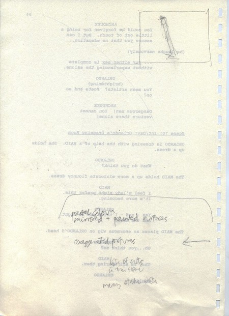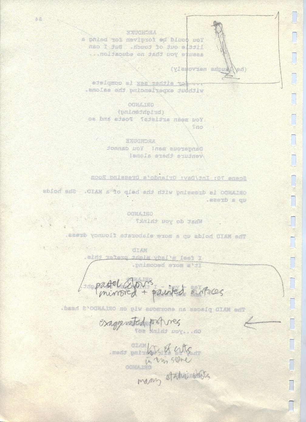 Description Revised draft script for Orlando, handwritten notes and diagrams in pencil, page 84, back