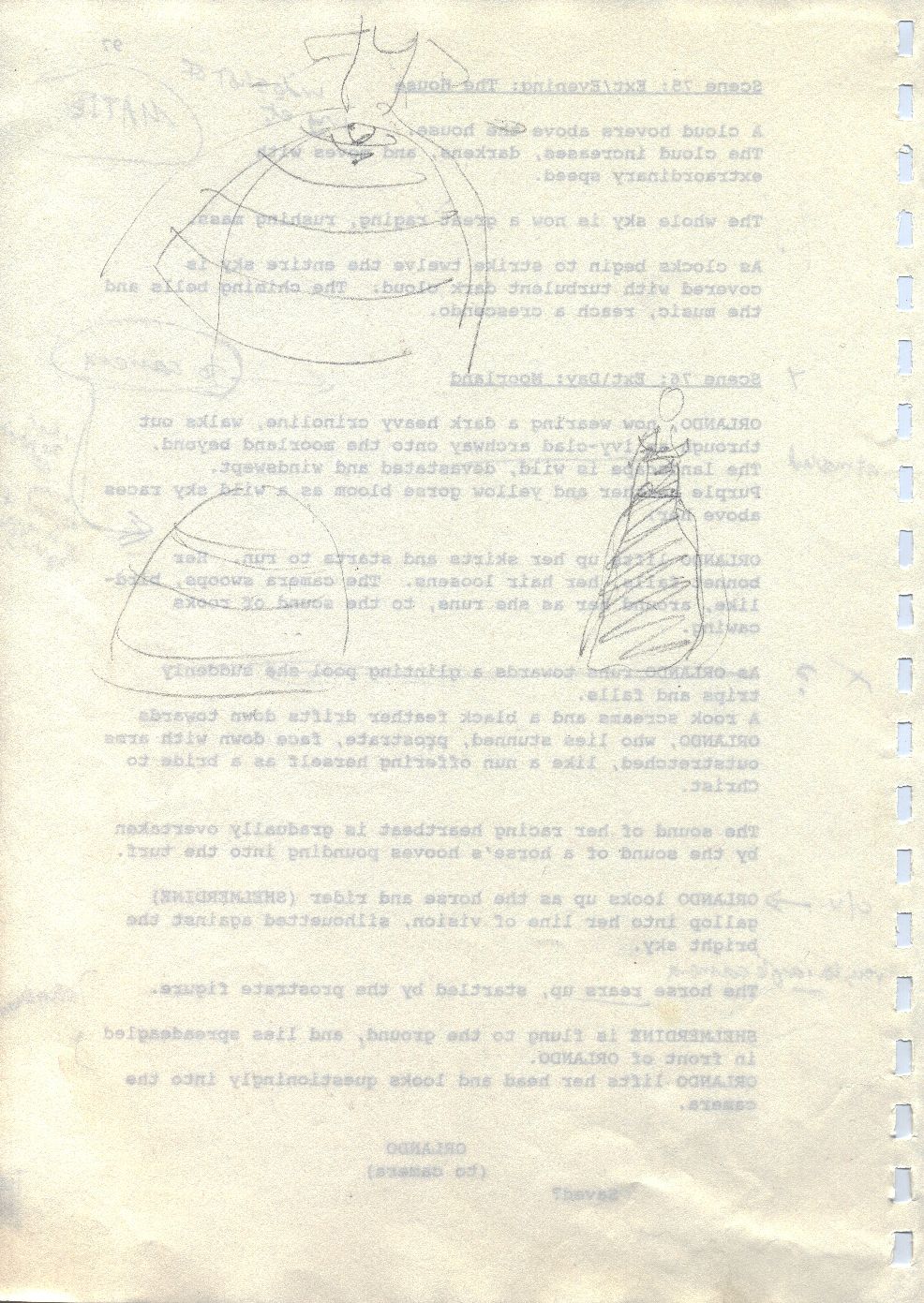 Description Revised draft script for Orlando, hand drawn diagrams in pencil, page 97, back