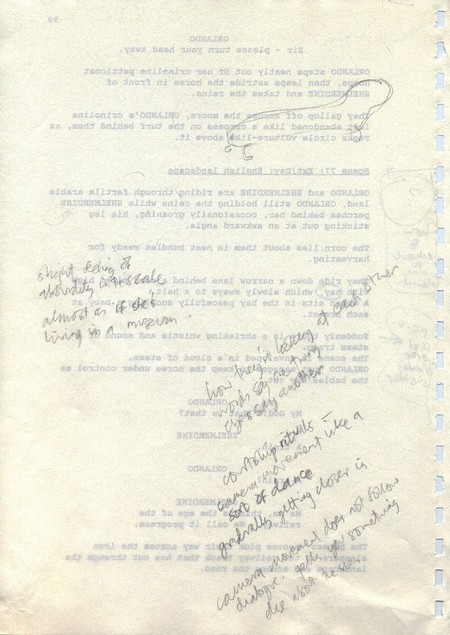 Description Revised draft script for Orlando, handwritten notes and diagrams in pencil, page 99, back