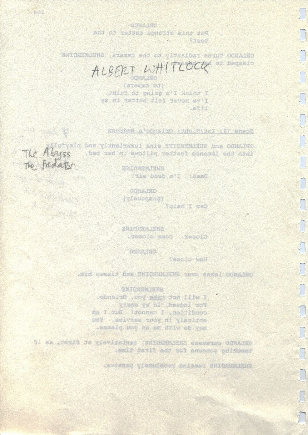 Description Revised draft script for Orlando, handwritten notes in pencil, page 104, back