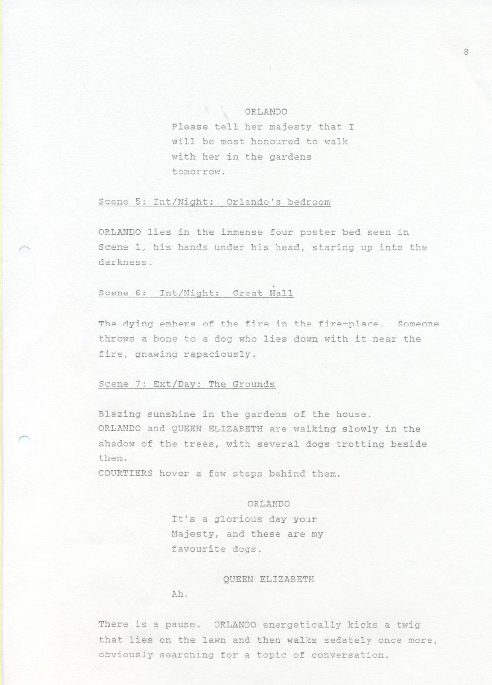 Description Black and white A4 computer printed, Paper, Revised draft of screenplay