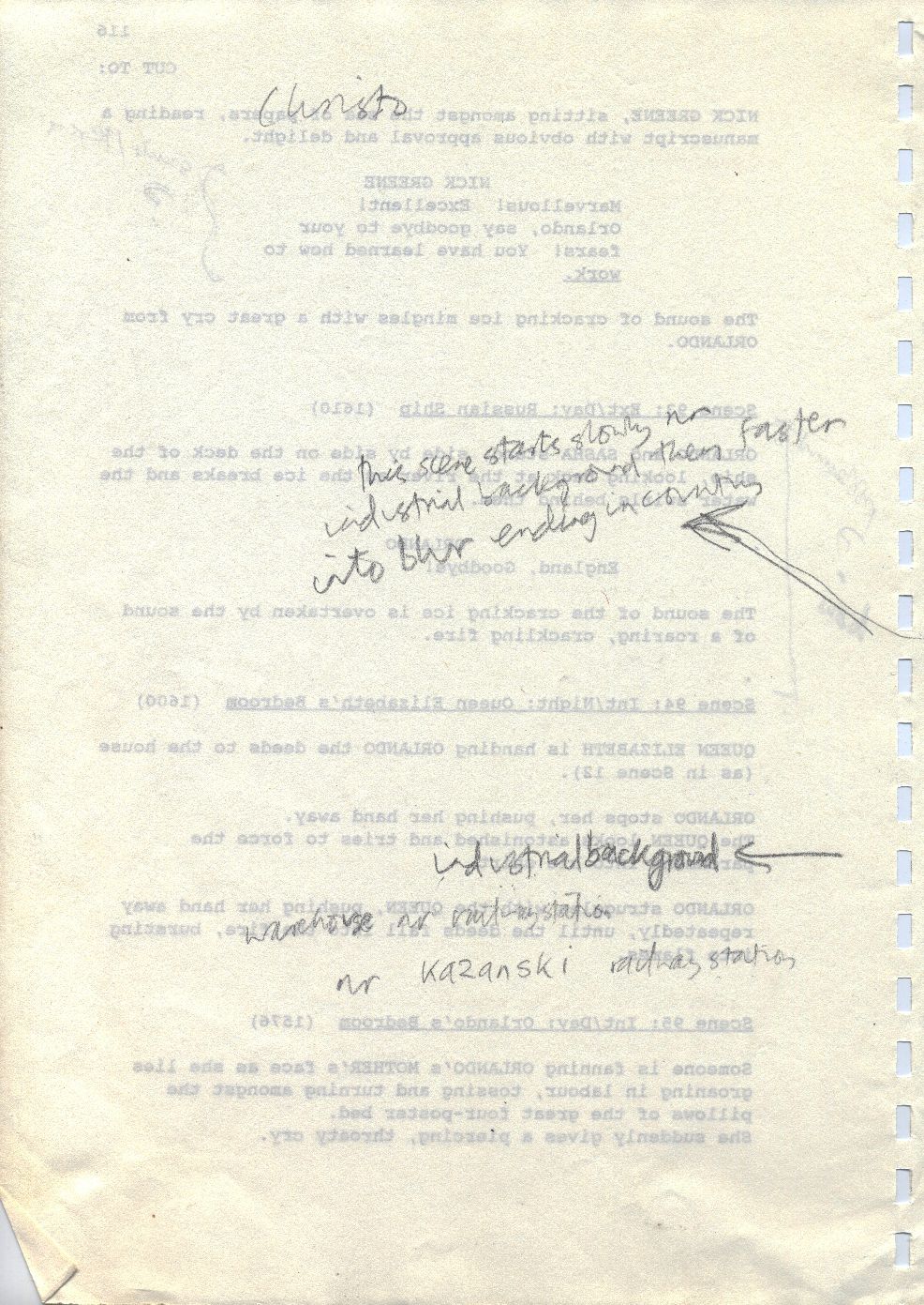 Description Revised draft script for Orlando, handwritten notes in pencil, page 116, back