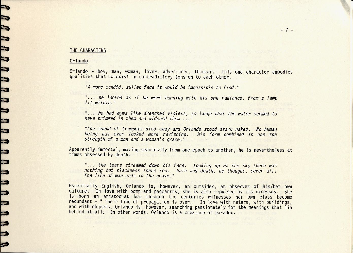 Pathway to reflect upon and illustrate the process of adapting Virginia Woolf’s 1928 novel, Orlando, to film.