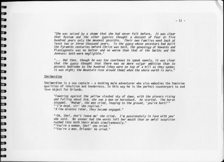 Description 1 x A4 black photograph album; 34 vellum pages; 24 x colour prints, Mixed, Presentation book containing Sally Potter's notes on the film and colour photographs of Tilda Swinton at Hatfield House