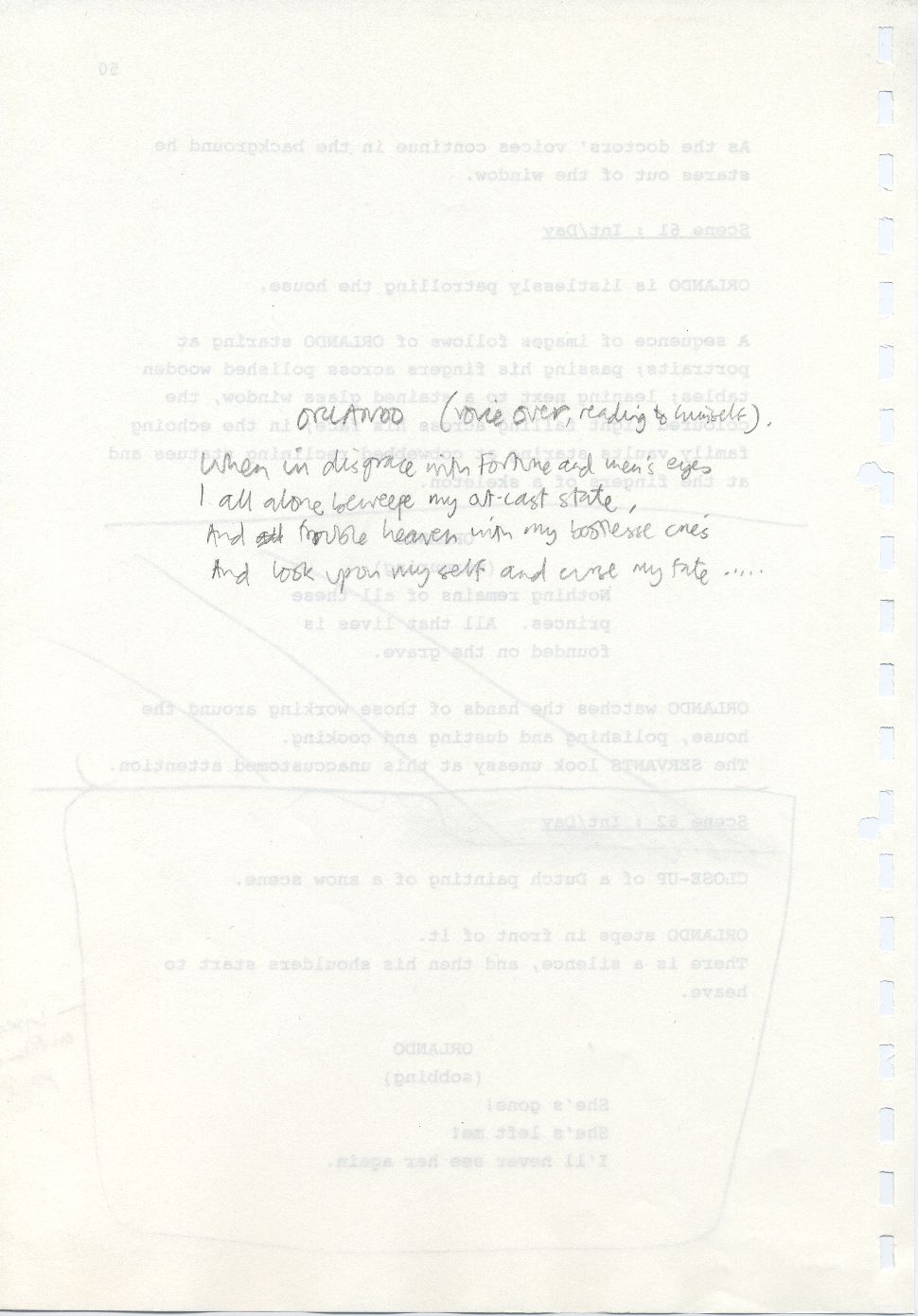 Description Reverse of page 50. Handwritten script in pencil on A4 paper bound with a plastic comb spine