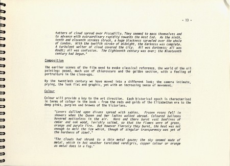 Description 1 x A4 black photograph album; 34 vellum pages; 24 x colour prints, Mixed, Presentation book containing Sally Potter's notes on the film and colour photographs of Tilda Swinton at Hatfield House