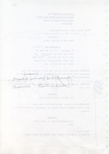 Description Reverse of page 138 of second draft script for Orlando. Handwritten script with pencil on A4 paper bound with a plastic com spine,