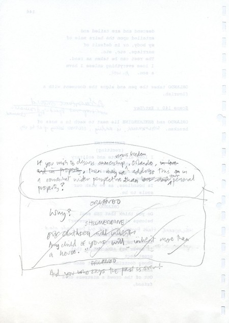 Description Reverse of page 146 of second draft script for Orlando. Handwritten script with pencil on A4 paper bound with a plastic comb spine,
