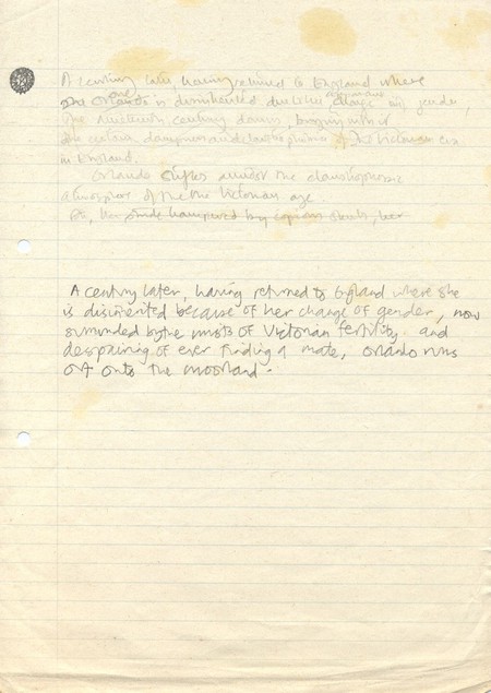 Description Page 7 of handwritten notes and ideas on Orlando written in pencil on a loose leaf of A4 lined paper