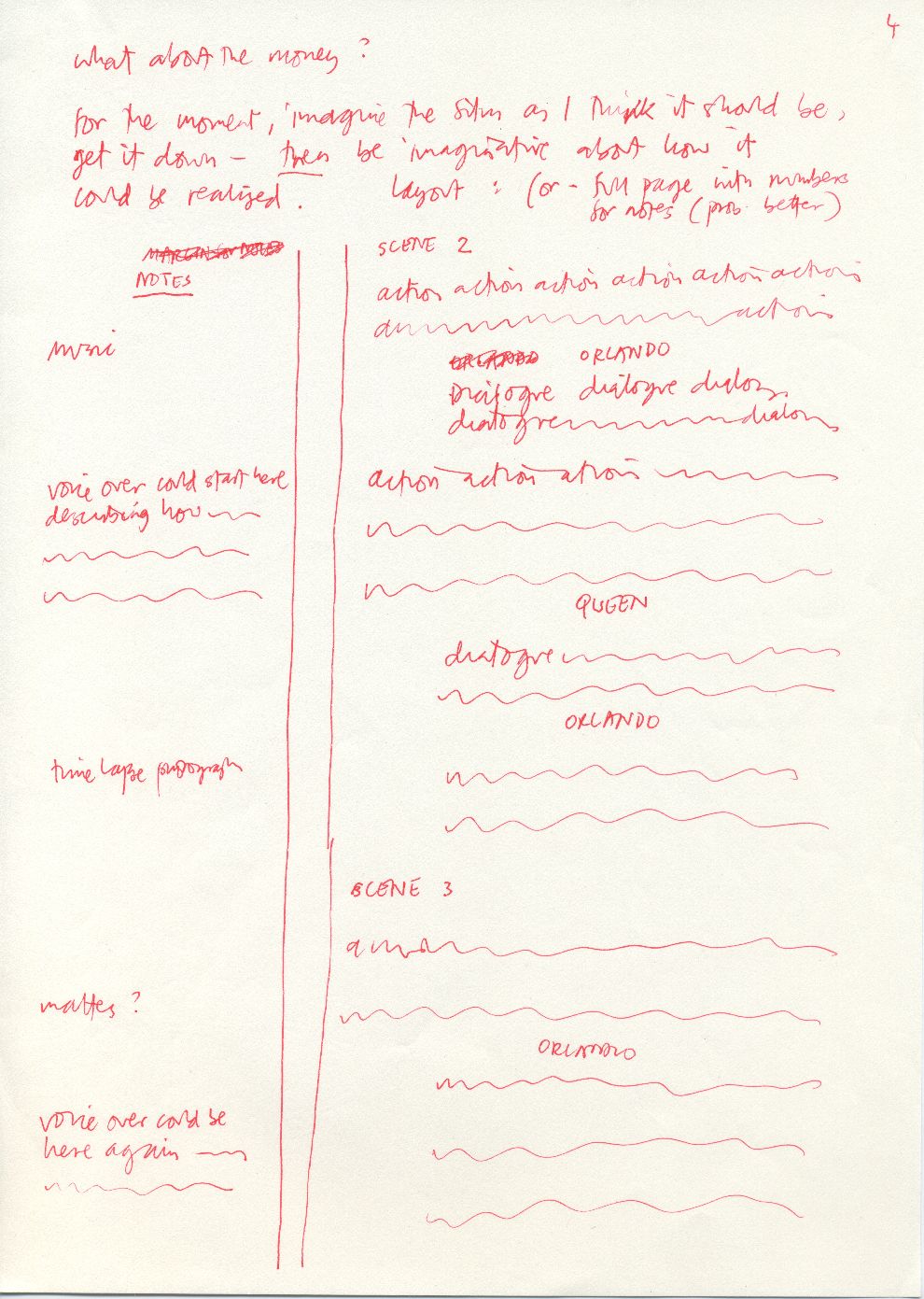 Description Handwritten notes marked "4" in red ink on white A4 paper