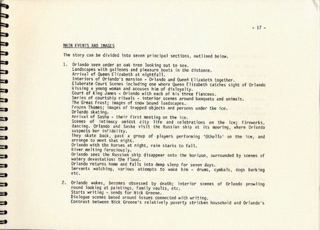 A list of documents processing the reduction of the novel into key scenes in order to create the film