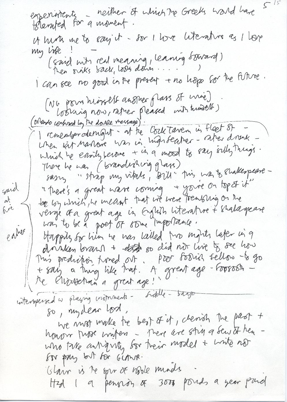 Description Photocopied page of script marked 15 and 5. Black on white A4