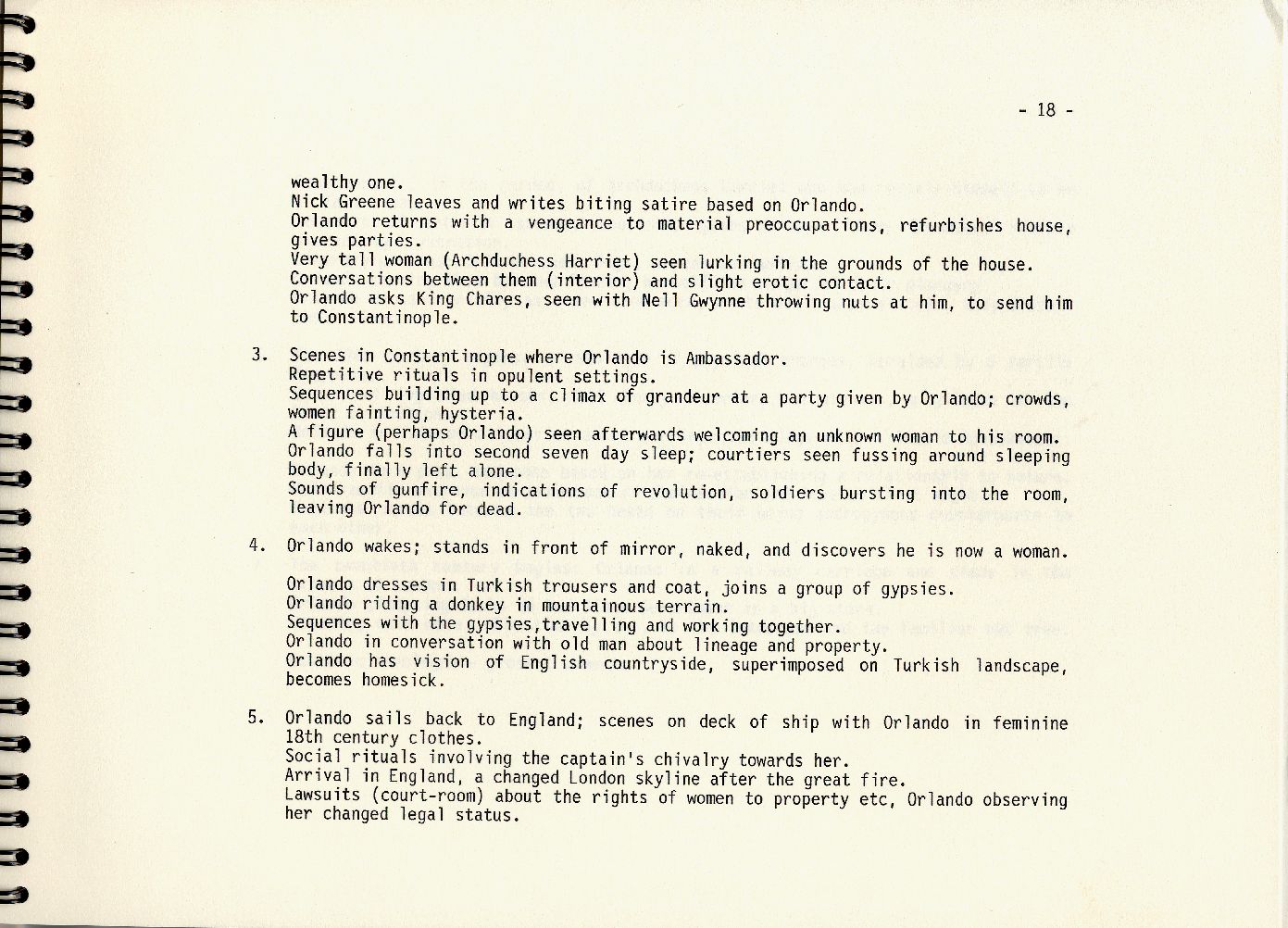 A list of documents processing the reduction of the novel into key scenes in order to create the film