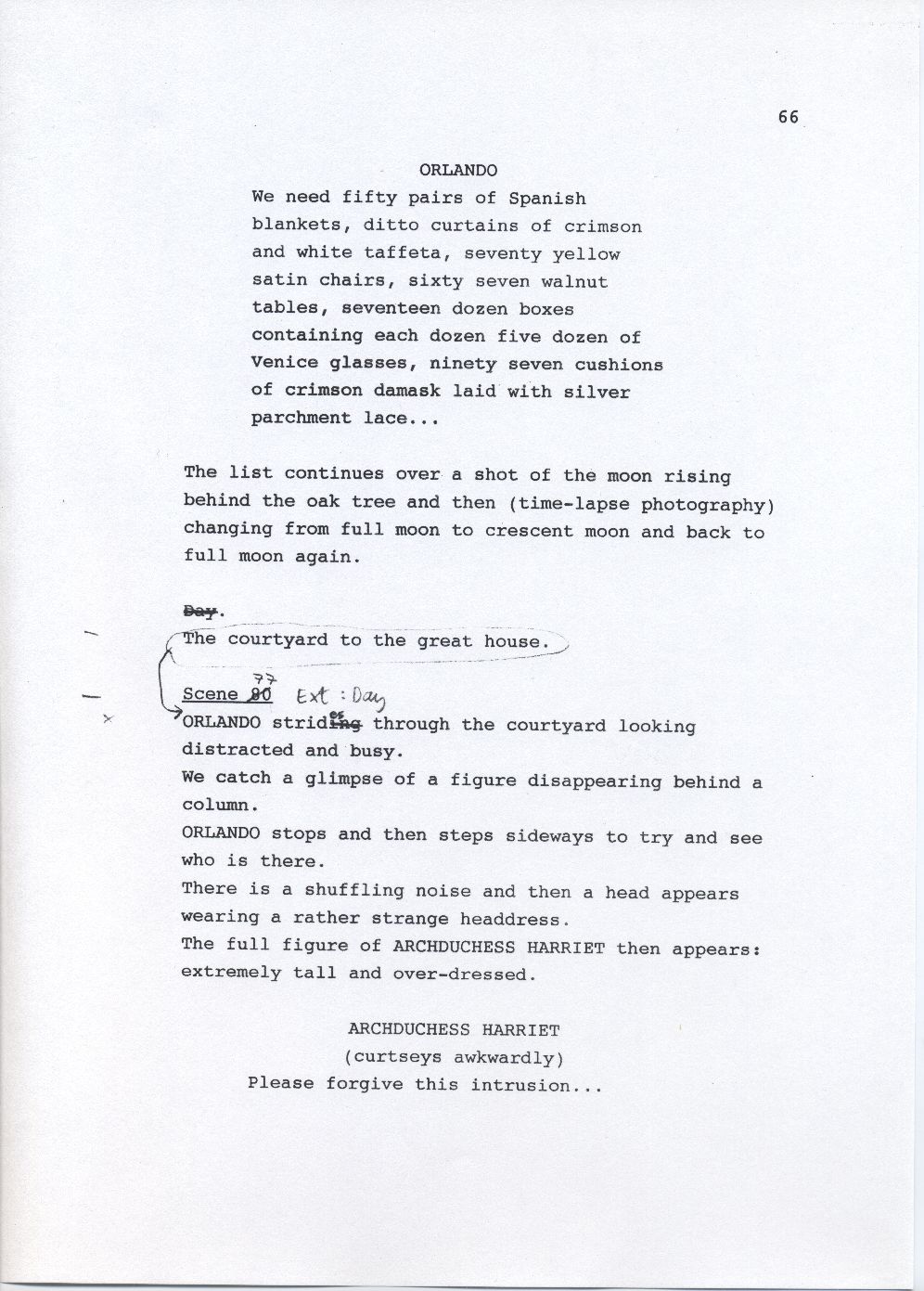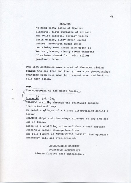 Description Page 66 of rough draft of scene 76, scene 77. Black text on white A4 with pen annotations.