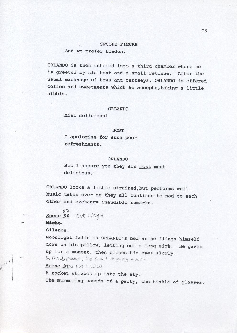 Description Page 73 of rough draft of scene 86, scene 87, scene 88. Black text on white A4 with pen annotations.