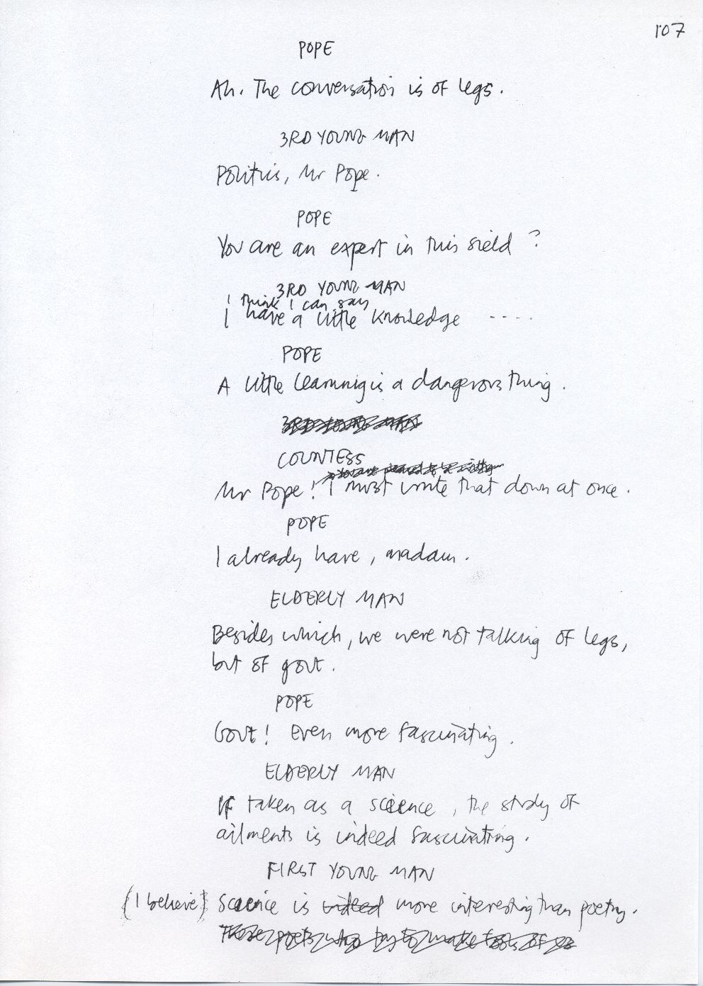 Description Page 107 of rough draft of scene 119. Hand written in black ink with pen annotations.