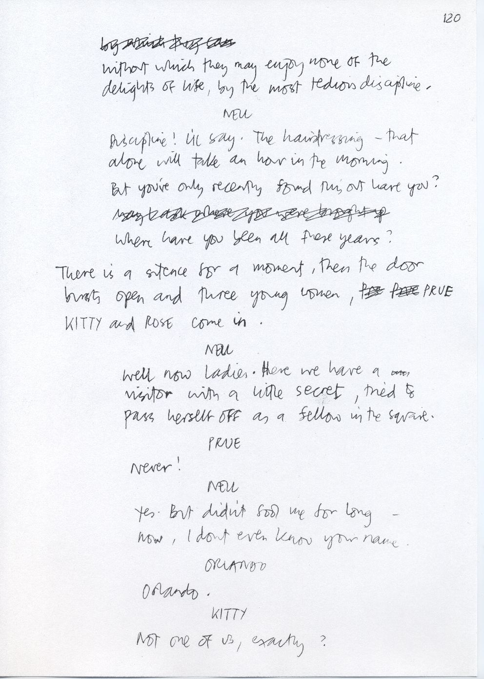 Description Page 120 of rough draft of scene 128. Hand written in black ink with pen annotations.