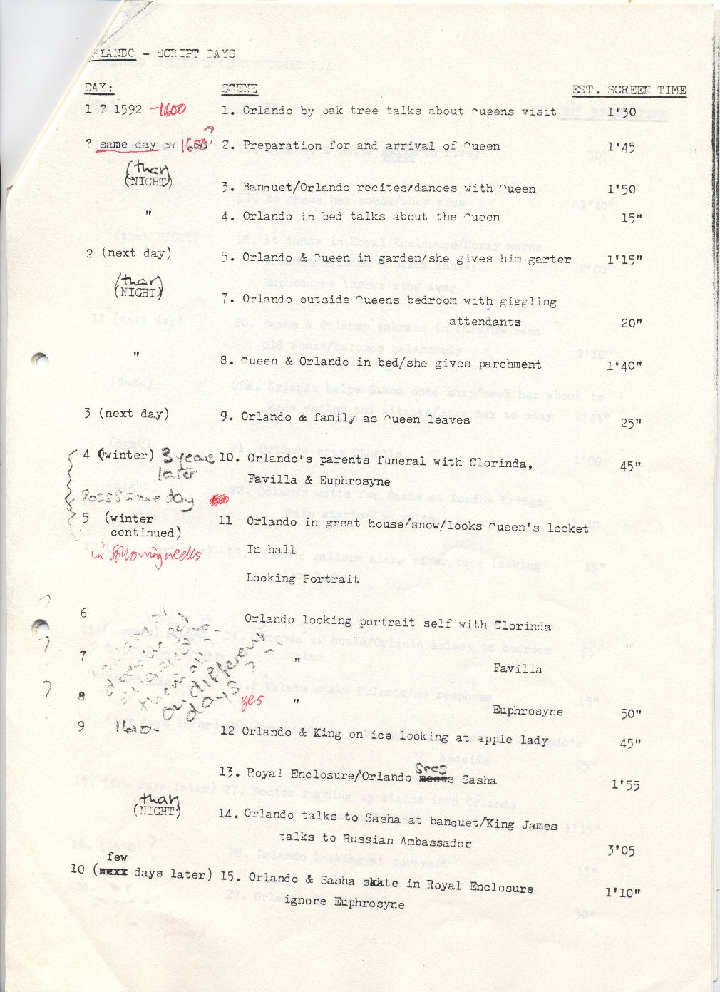 Description Page 1 of estimated screen time. A4 typed page with pen annotations.