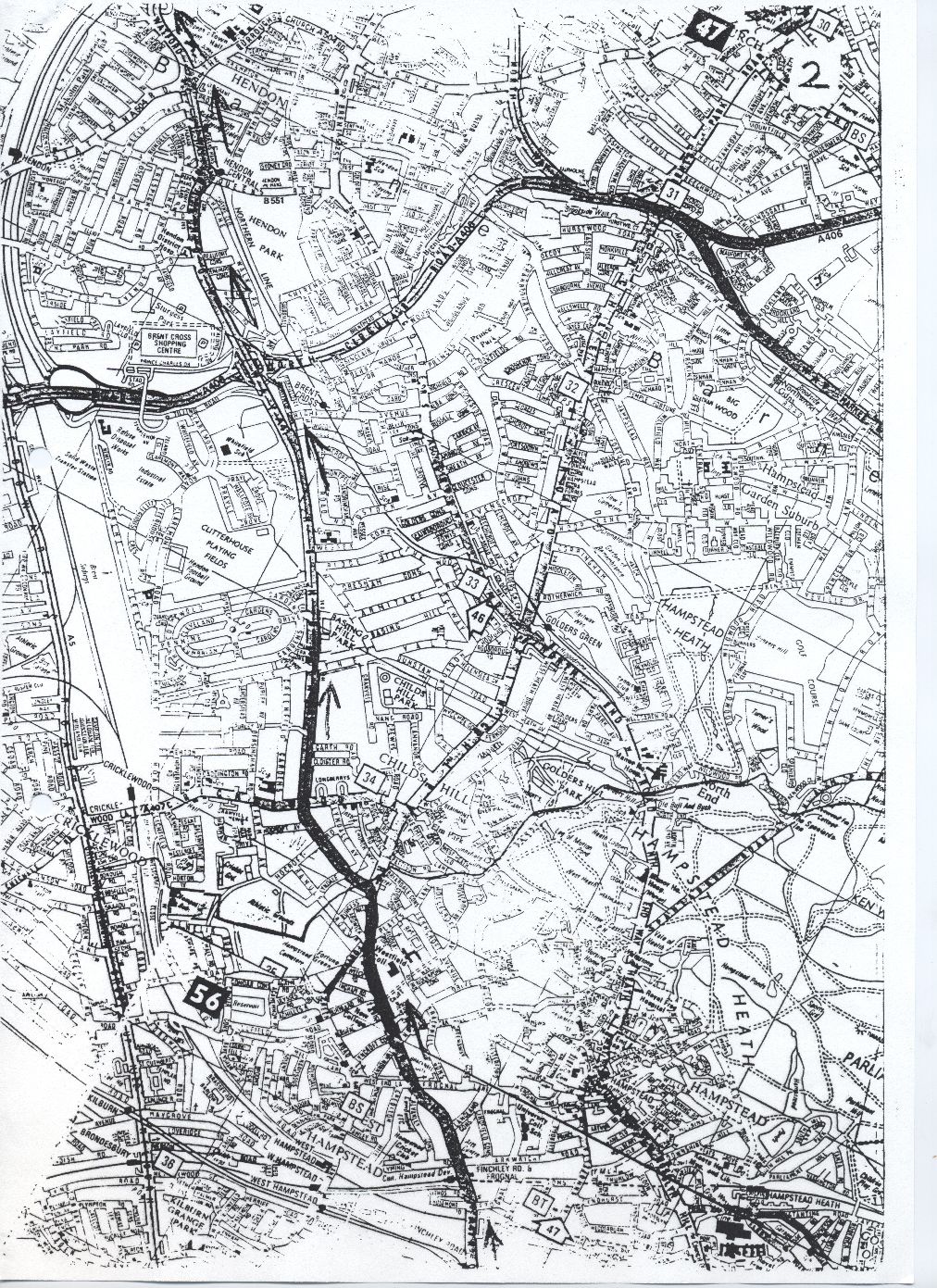 Description Page 6 of Hatfield House Information. Photocopy of map of route from London with handwritten annotations
