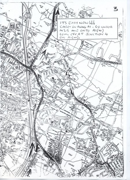 Description Page 7 of Hatfield House Information. Photocopy of map of route from London with handwritten annotations